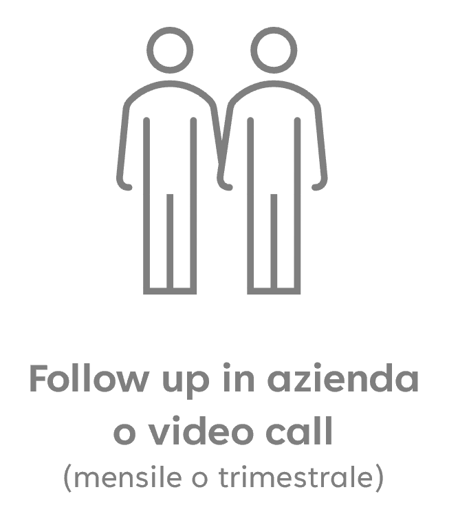 Potremo seguirti sia in azienda che online, con periodicità mensile o trimestrale, sia per garantire la realizzazione dei miglioramenti utili a raggiungere i tuoi obiettivi che per implementarne di nuovi.